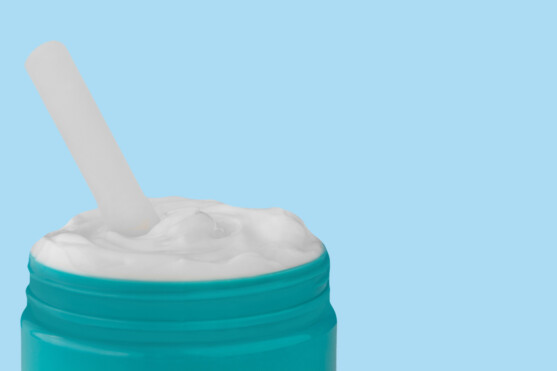 4. Gesamte Haut dünn eincremen, gerötete oder besonders trockene Stellen etwas dicker eincremen